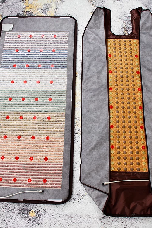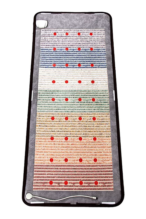 The arrangement of the gemstones allows the induction of infrared heat, negative ions as well as the natural inherent properties of the crystals, throughout the body in a balanced rhythmical pattern.